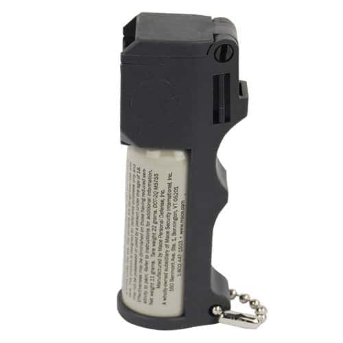 Compact size fits comfortably in woman’s hand. Finger-grip dispenser correctly orients the unit even in the dark. Features flip-top safety cap and key chain.