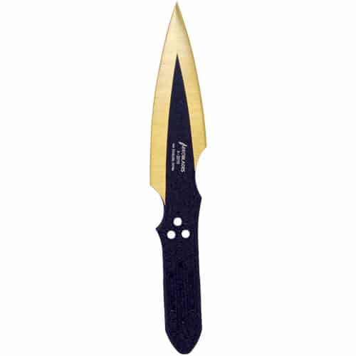 4 Piece Throwing Knife Assorted, blue, red, gold, green Color . 6.5″ Length, 4 Piece Set, made from 440 stainless steel, great beginner to intermediate throwing knife. Includes sheath pouch for knives.
